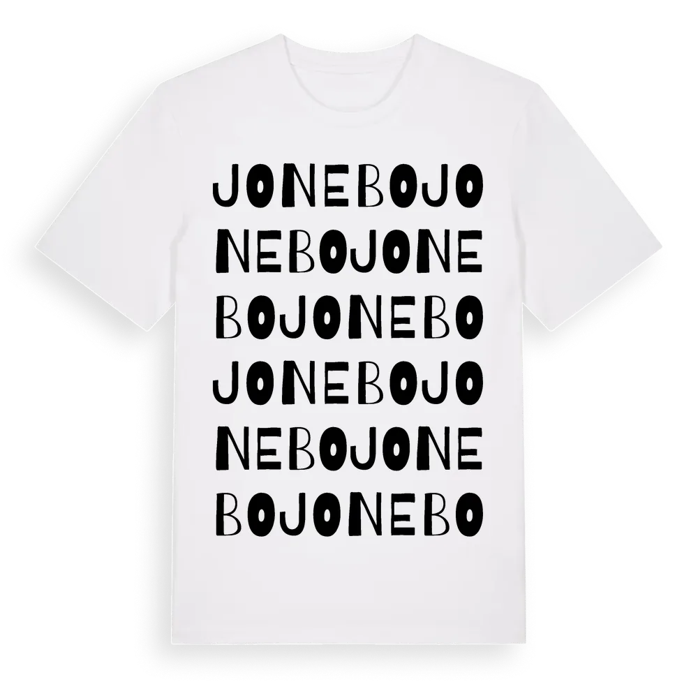 Jonebo ordlek t-shirt är inspirerad av Jonebo i Östergötlands län, Sverige. Tröjan är designad för dig som har en speciell koppling till platsen – oavsett om du bor här, har rötterna här eller bara älskar Jonebo.