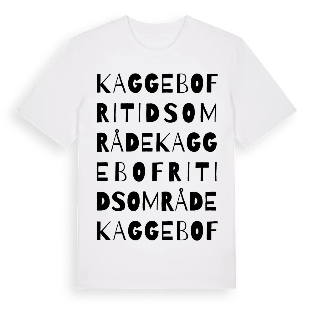 Kaggebo Fritidsområde ordlek t-shirt är inspirerad av byn Kaggebo Fritidsområde i Östergötlands län, Sverige. Tröjan är designad för dig som har en speciell koppling till platsen – oavsett om du bor här, har rötterna här eller bara älskar Kaggebo Fritidsområde.