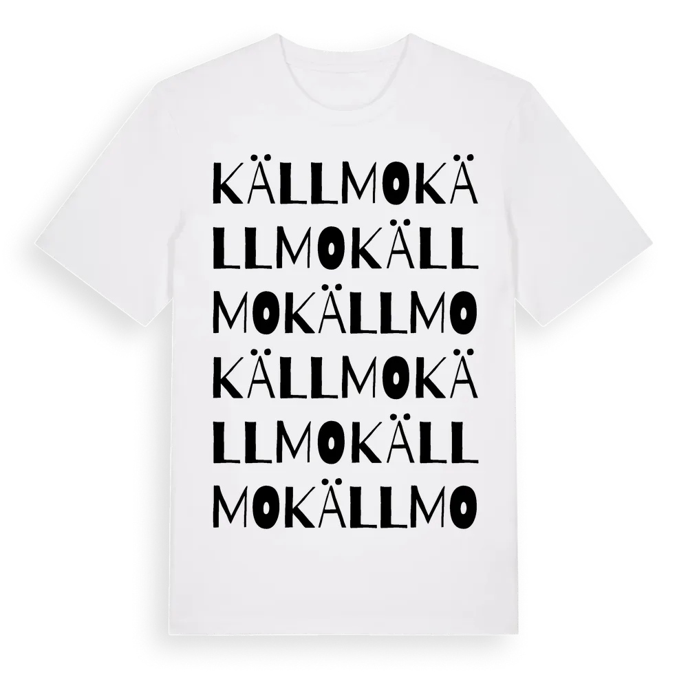Källmo ordlek t-shirt är inspirerad av Källmo i Östergötlands län, Sverige. Tröjan är designad för dig som har en speciell koppling till platsen – oavsett om du bor här, har rötterna här eller bara älskar Källmo.
