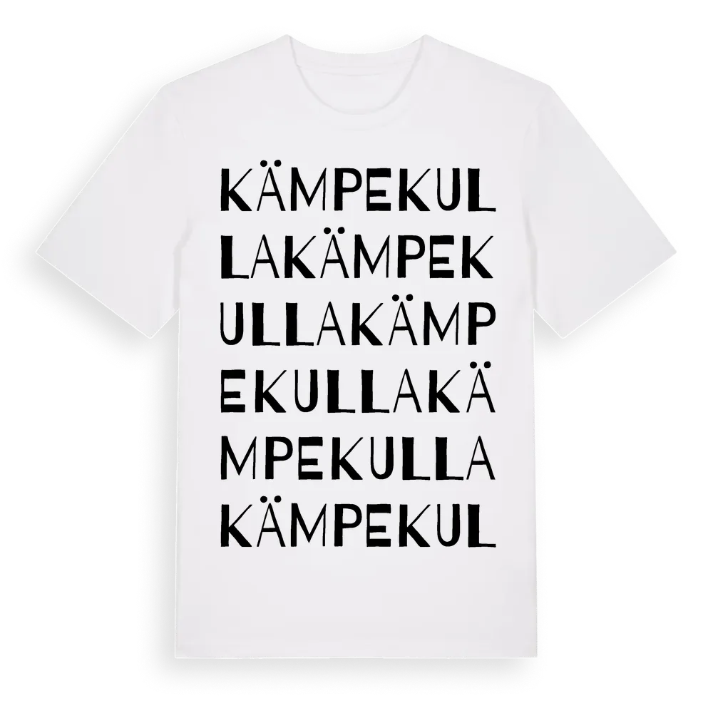 Kämpekulla ordlek t-shirt är inspirerad av Kämpekulla i Östergötlands län, Sverige. Tröjan är designad för dig som har en speciell koppling till platsen – oavsett om du bor här, har rötterna här eller bara älskar Kämpekulla.