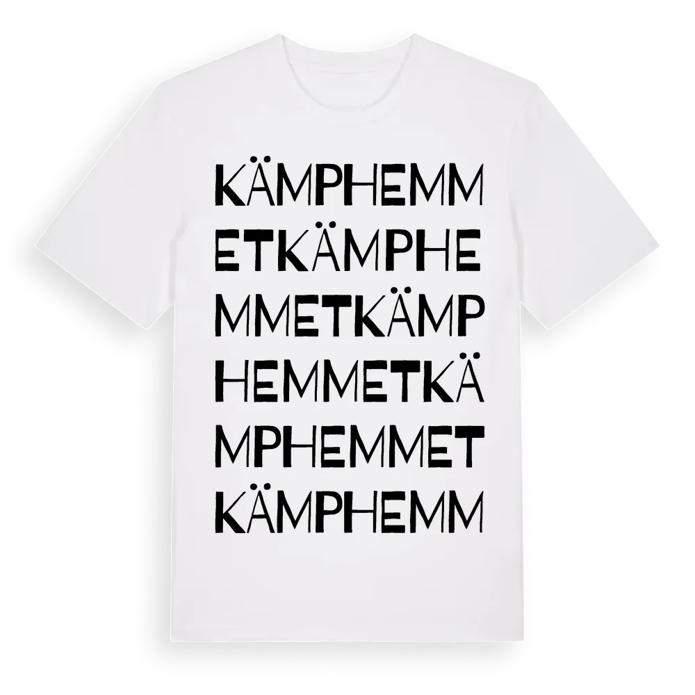 Kämphemmet ordlek t-shirt är inspirerad av Kämphemmet i Östergötlands län, Sverige. Tröjan är designad för dig som har en speciell koppling till platsen – oavsett om du bor här, har rötterna här eller bara älskar Kämphemmet.