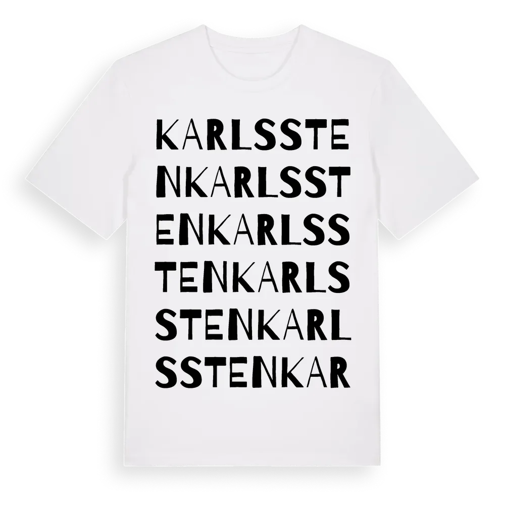 Karlssten ordlek t-shirt är inspirerad av Karlssten i Östergötlands län, Sverige. Tröjan är designad för dig som har en speciell koppling till platsen – oavsett om du bor här, har rötterna här eller bara älskar Karlssten.