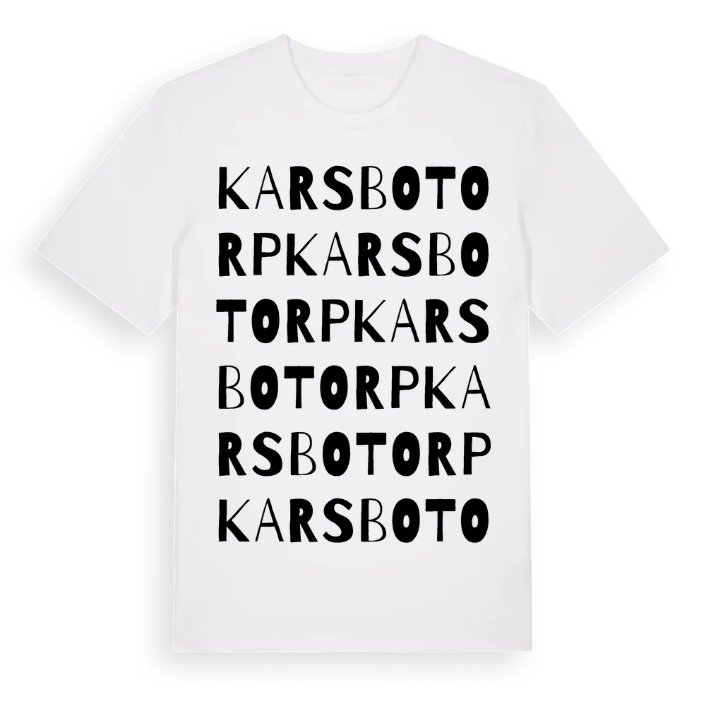 Karsbotorp ordlek t-shirt är inspirerad av Karsbotorp i Östergötlands län, Sverige. Tröjan är designad för dig som har en speciell koppling till platsen – oavsett om du bor här, har rötterna här eller bara älskar Karsbotorp.