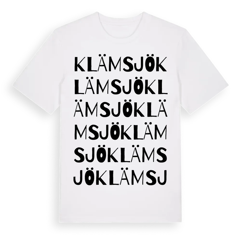 Klämsjö ordlek t-shirt är inspirerad av Klämsjö i Östergötlands län, Sverige. Tröjan är designad för dig som har en speciell koppling till platsen – oavsett om du bor här, har rötterna här eller bara älskar Klämsjö.