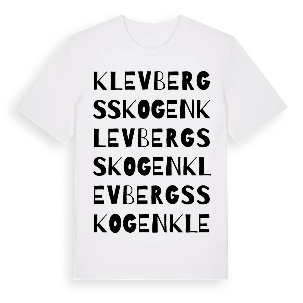 Klevbergsskogen ordlek t-shirt är inspirerad av Klevbergsskogen i Östergötlands län, Sverige. Tröjan är designad för dig som har en speciell koppling till platsen – oavsett om du bor här, har rötterna här eller bara älskar Klevbergsskogen.