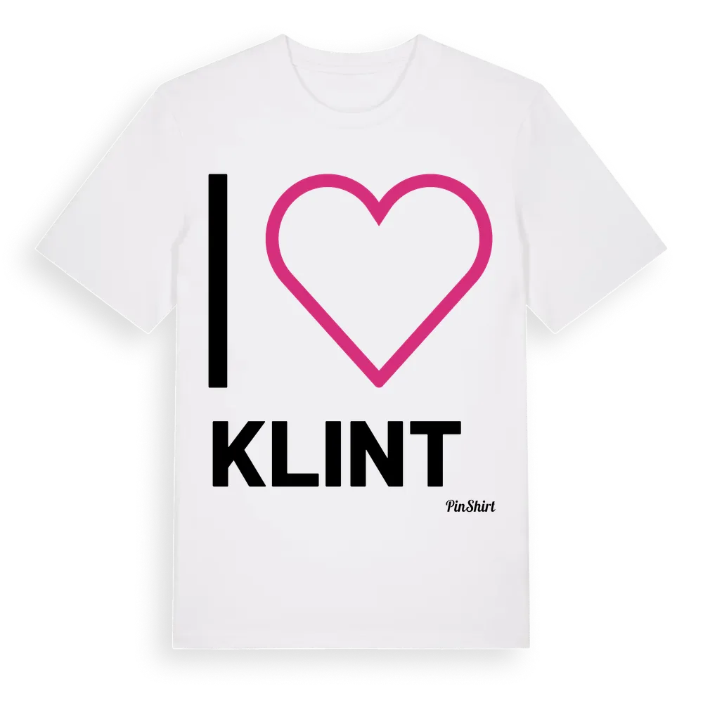 Det klassiska "I ❤ Klint"-motivet i stort format som täcker hela bröstet. För dig som vill visa kärleken till Klint på riktigt. Premium bomull, unisex – från Klint i Östergötlands län.