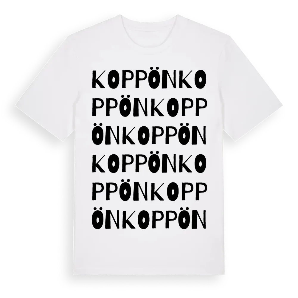 Koppön ordlek t-shirt är inspirerad av Koppön i Östergötlands län, Sverige. Tröjan är designad för dig som har en speciell koppling till platsen – oavsett om du bor här, har rötterna här eller bara älskar Koppön.