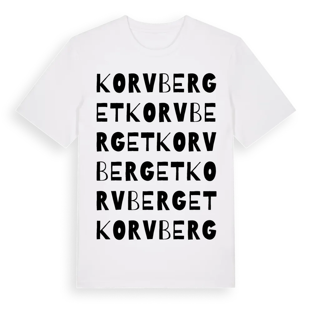 Korvberget ordlek t-shirt är inspirerad av Korvberget i Östergötlands län, Sverige. Tröjan är designad för dig som har en speciell koppling till platsen – oavsett om du bor här, har rötterna här eller bara älskar Korvberget.