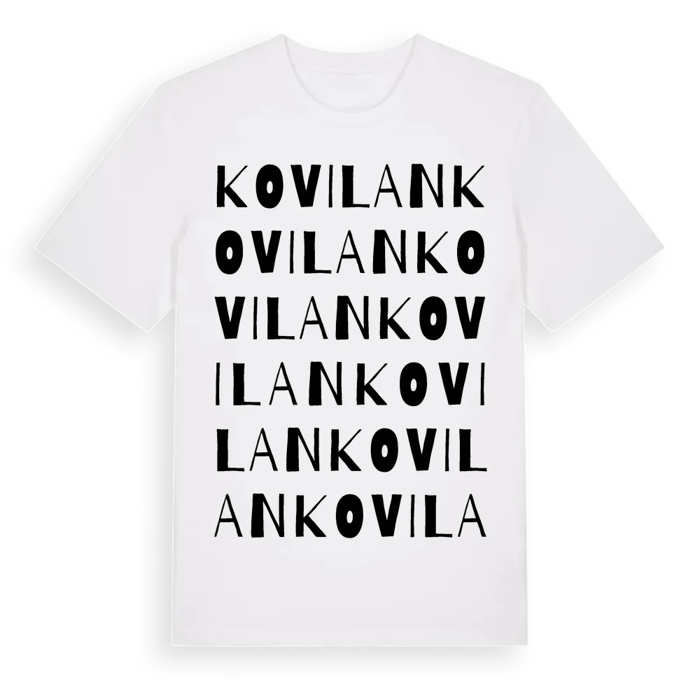 Kovilan ordlek t-shirt är inspirerad av Kovilan i Östergötlands län, Sverige. Tröjan är designad för dig som har en speciell koppling till platsen – oavsett om du bor här, har rötterna här eller bara älskar Kovilan.