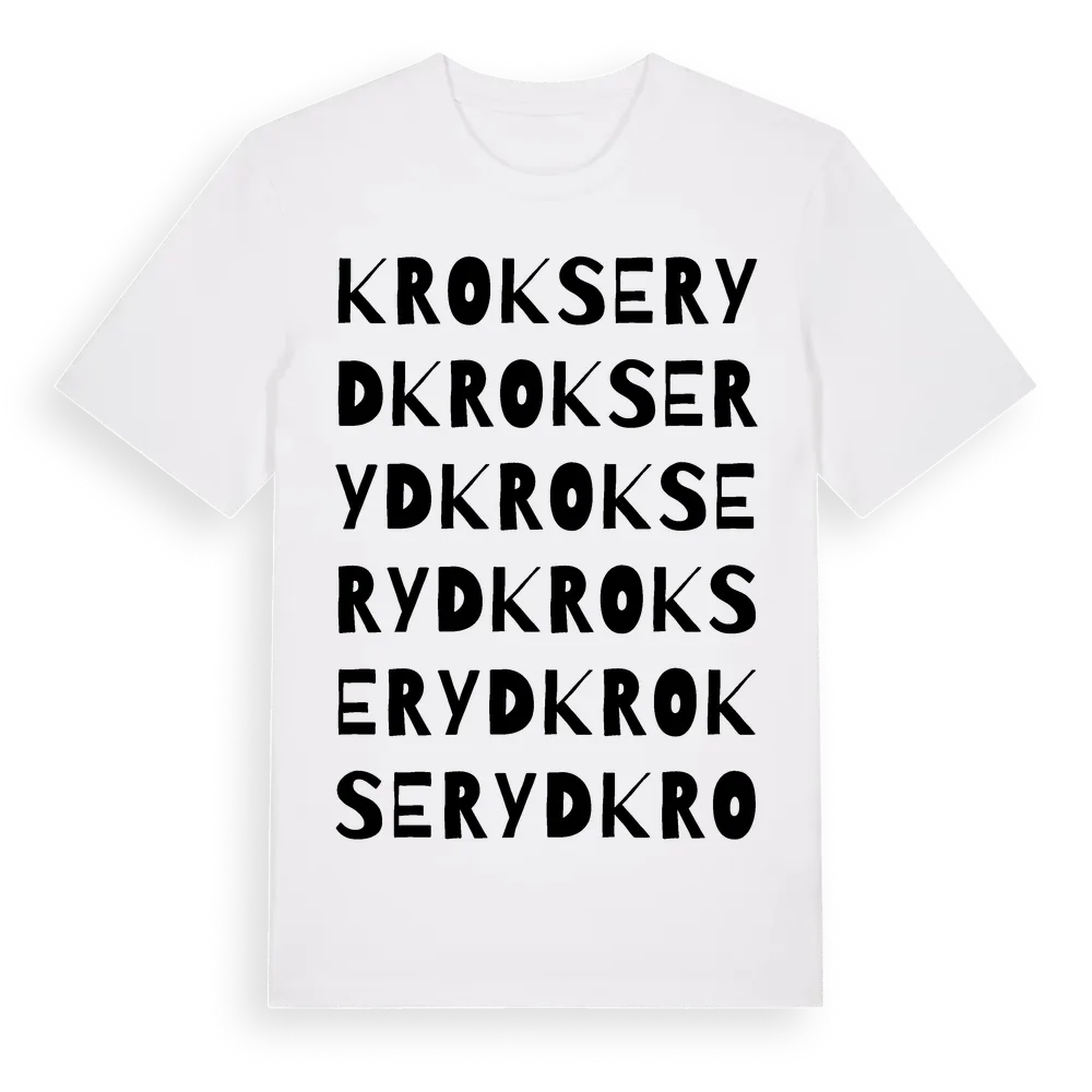 Krokseryd ordlek t-shirt är inspirerad av byn Krokseryd i Östergötlands län, Sverige. Tröjan är designad för dig som har en speciell koppling till platsen – oavsett om du bor här, har rötterna här eller bara älskar Krokseryd.