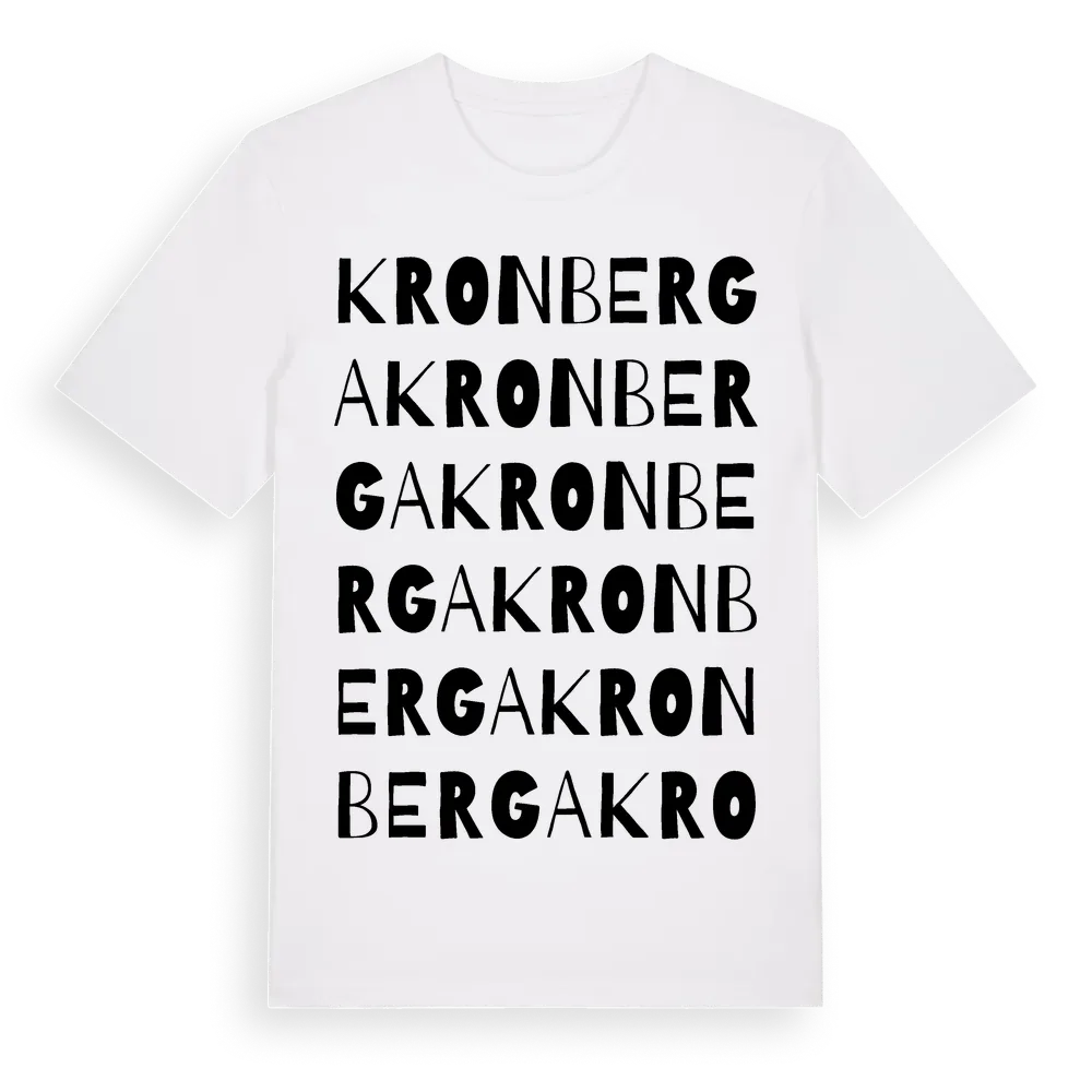 Kronberga ordlek t-shirt är inspirerad av Kronberga i Östergötlands län, Sverige. Tröjan är designad för dig som har en speciell koppling till platsen – oavsett om du bor här, har rötterna här eller bara älskar Kronberga.