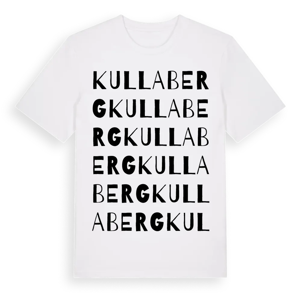 Kullaberg ordlek t-shirt är inspirerad av Kullaberg i Östergötlands län, Sverige. Tröjan är designad för dig som har en speciell koppling till platsen – oavsett om du bor här, har rötterna här eller bara älskar Kullaberg.