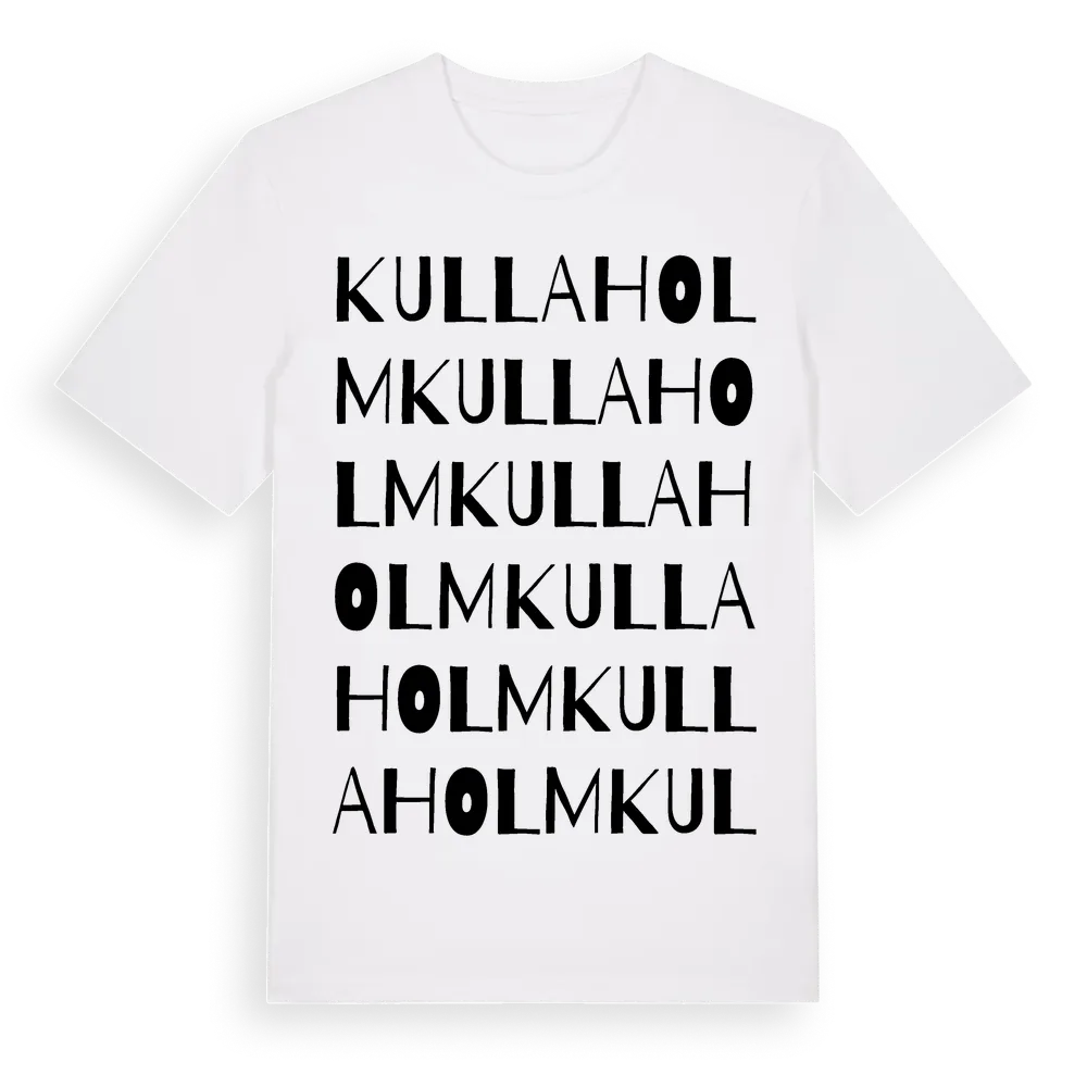 Kullaholm ordlek t-shirt är inspirerad av byn Kullaholm i Östergötlands län, Sverige. Tröjan är designad för dig som har en speciell koppling till platsen – oavsett om du bor här, har rötterna här eller bara älskar Kullaholm.