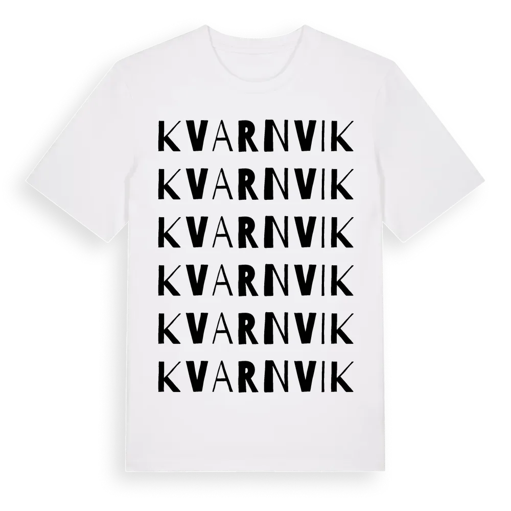Kvarnvik ordlek t-shirt är inspirerad av Kvarnvik i Östergötlands län, Sverige. Tröjan är designad för dig som har en speciell koppling till platsen – oavsett om du bor här, har rötterna här eller bara älskar Kvarnvik.