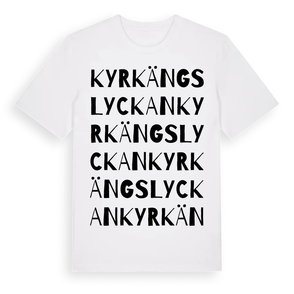 Kyrkängslyckan ordlek t-shirt är inspirerad av Kyrkängslyckan i Östergötlands län, Sverige. Tröjan är designad för dig som har en speciell koppling till platsen – oavsett om du bor här, har rötterna här eller bara älskar Kyrkängslyckan.