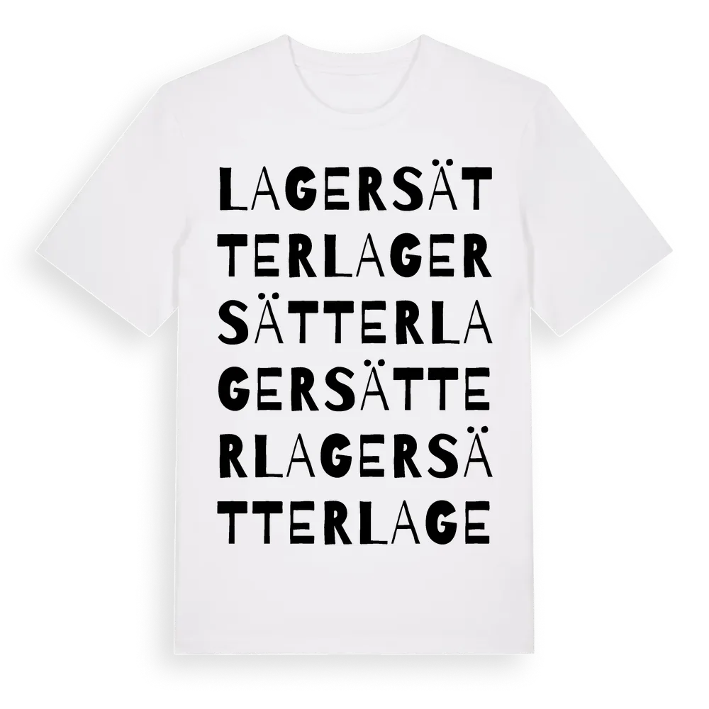 Lagersätter ordlek t-shirt är inspirerad av Lagersätter i Östergötlands län, Sverige. Tröjan är designad för dig som har en speciell koppling till platsen – oavsett om du bor här, har rötterna här eller bara älskar Lagersätter.