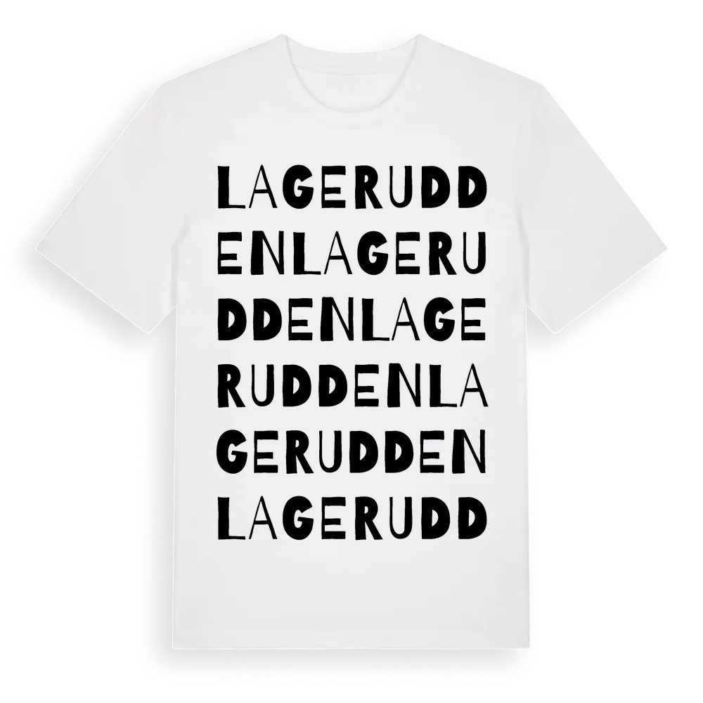 Lagerudden ordlek t-shirt är inspirerad av Lagerudden i Östergötlands län, Sverige. Tröjan är designad för dig som har en speciell koppling till platsen – oavsett om du bor här, har rötterna här eller bara älskar Lagerudden.