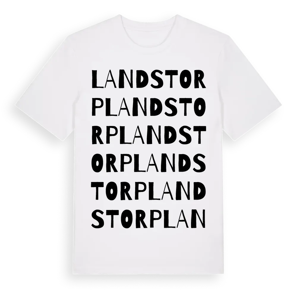 Landstorp ordlek t-shirt är inspirerad av Landstorp i Östergötlands län, Sverige. Tröjan är designad för dig som har en speciell koppling till platsen – oavsett om du bor här, har rötterna här eller bara älskar Landstorp.