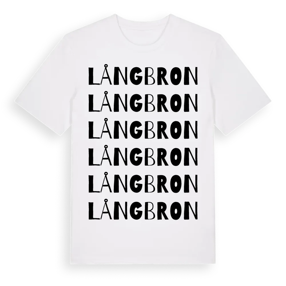 Långbron ordlek t-shirt är inspirerad av Långbron i Östergötlands län, Sverige. Tröjan är designad för dig som har en speciell koppling till platsen – oavsett om du bor här, har rötterna här eller bara älskar Långbron.