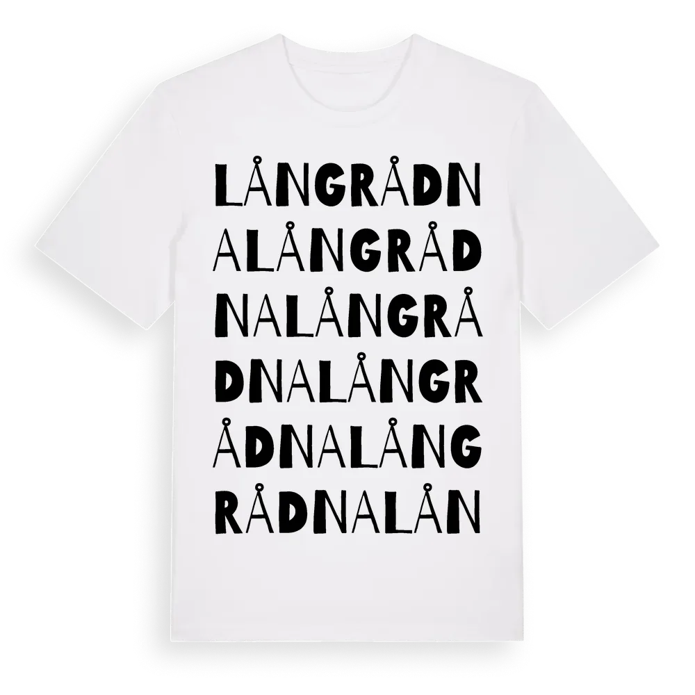 Långrådna ordlek t-shirt är inspirerad av byn Långrådna i Östergötlands län, Sverige. Tröjan är designad för dig som har en speciell koppling till platsen – oavsett om du bor här, har rötterna här eller bara älskar Långrådna.