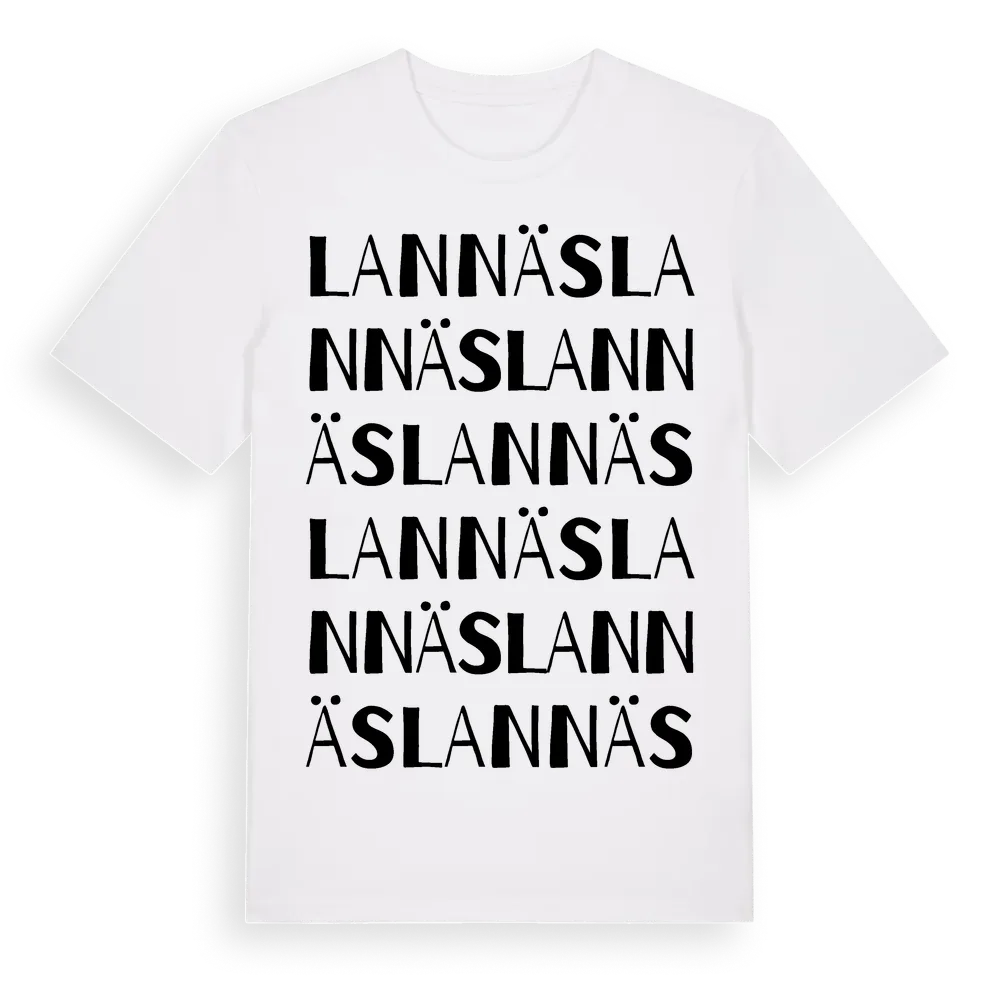 Lannäs ordlek t-shirt är inspirerad av byn Lannäs i Östergötlands län, Sverige. Tröjan är designad för dig som har en speciell koppling till platsen – oavsett om du bor här, har rötterna här eller bara älskar Lannäs.