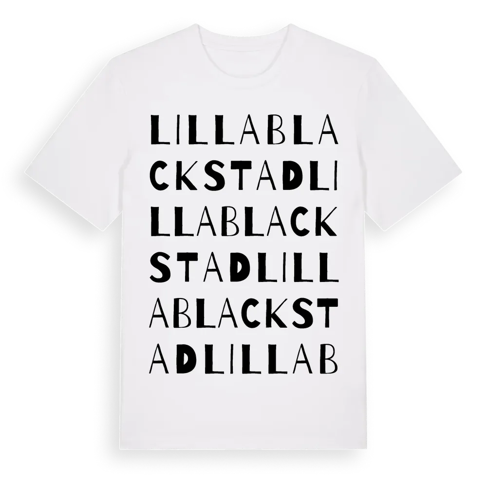 Lilla Blackstad ordlek t-shirt är inspirerad av Lilla Blackstad i Östergötlands län, Sverige. Tröjan är designad för dig som har en speciell koppling till platsen – oavsett om du bor här, har rötterna här eller bara älskar Lilla Blackstad.