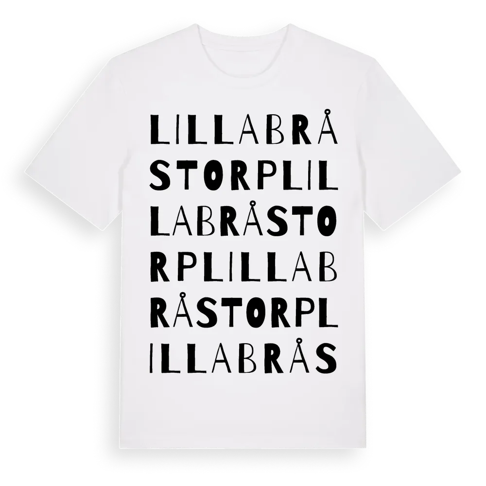 Lilla Bråstorp ordlek t-shirt är inspirerad av byn Lilla Bråstorp i Östergötlands län, Sverige. Tröjan är designad för dig som har en speciell koppling till platsen – oavsett om du bor här, har rötterna här eller bara älskar Lilla Bråstorp.