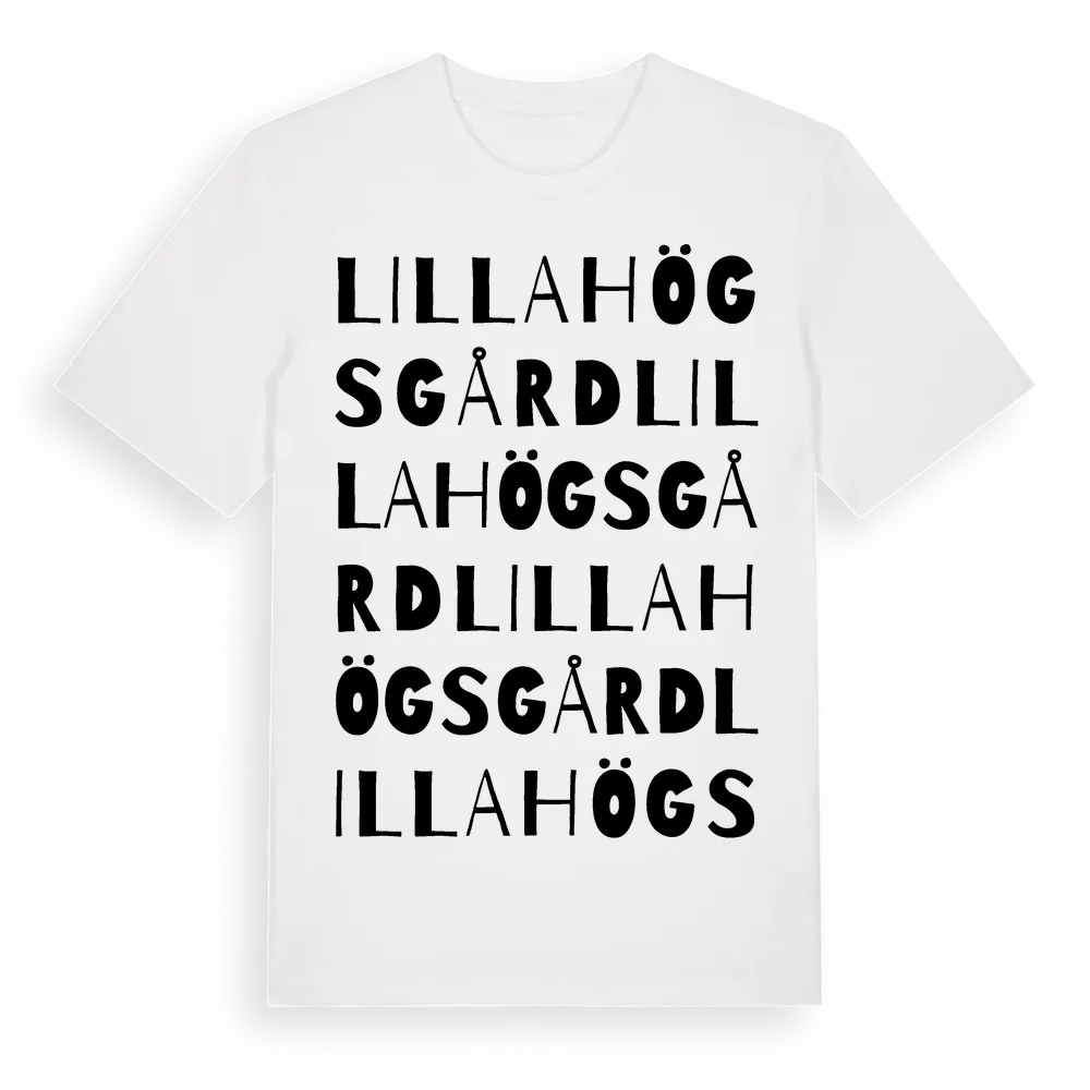 Lilla Högsgård ordlek t-shirt är inspirerad av Lilla Högsgård i Östergötlands län, Sverige. Tröjan är designad för dig som har en speciell koppling till platsen – oavsett om du bor här, har rötterna här eller bara älskar Lilla Högsgård.