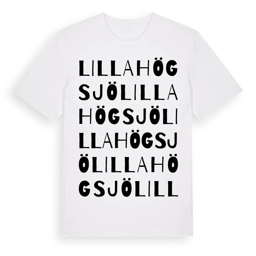 Lilla Högsjö ordlek t-shirt är inspirerad av Lilla Högsjö i Östergötlands län, Sverige. Tröjan är designad för dig som har en speciell koppling till platsen – oavsett om du bor här, har rötterna här eller bara älskar Lilla Högsjö.
