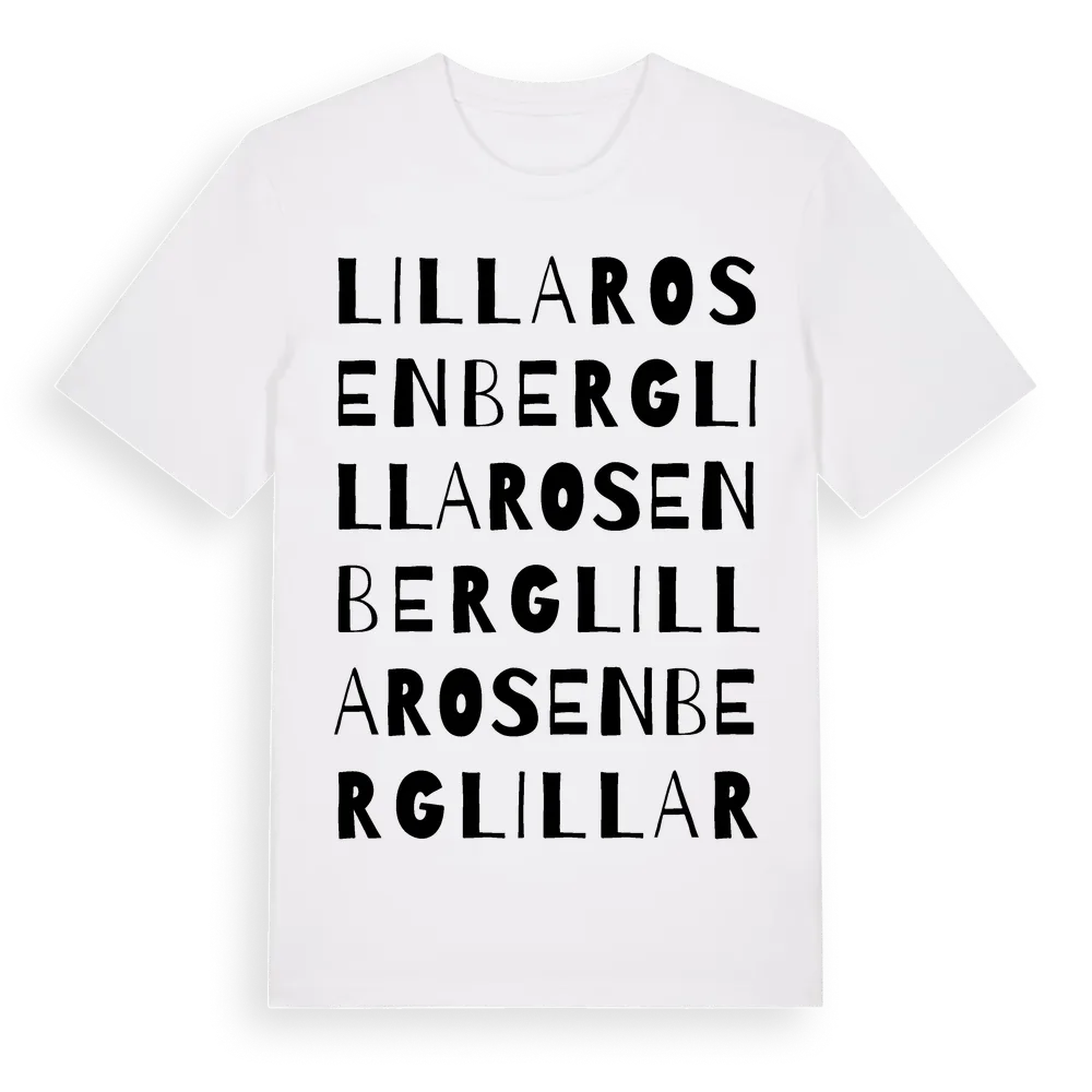 Lilla Rosenberg ordlek t-shirt är inspirerad av Lilla Rosenberg i Östergötlands län, Sverige. Tröjan är designad för dig som har en speciell koppling till platsen – oavsett om du bor här, har rötterna här eller bara älskar Lilla Rosenberg.