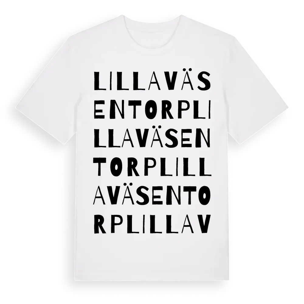 Lilla Väsentorp ordlek t-shirt är inspirerad av Lilla Väsentorp i Östergötlands län, Sverige. Tröjan är designad för dig som har en speciell koppling till platsen – oavsett om du bor här, har rötterna här eller bara älskar Lilla Väsentorp.