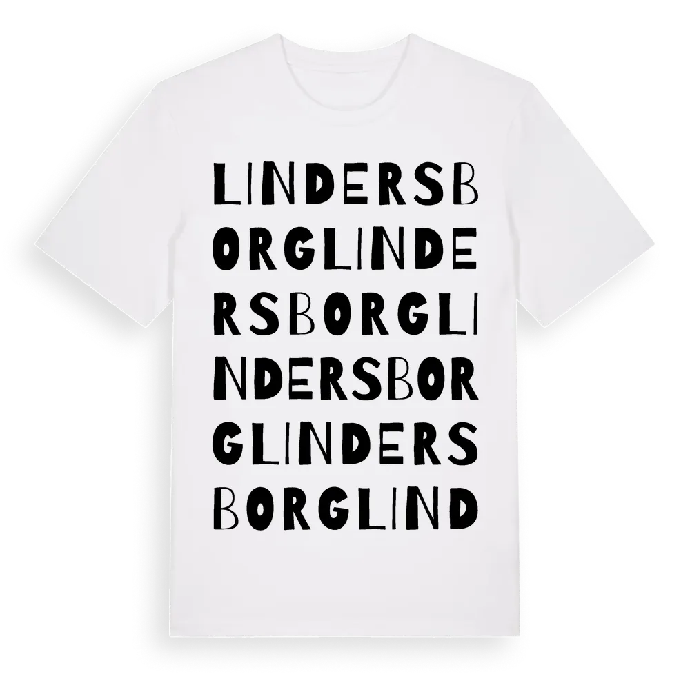 Lindersborg ordlek t-shirt är inspirerad av Lindersborg i Östergötlands län, Sverige. Tröjan är designad för dig som har en speciell koppling till platsen – oavsett om du bor här, har rötterna här eller bara älskar Lindersborg.