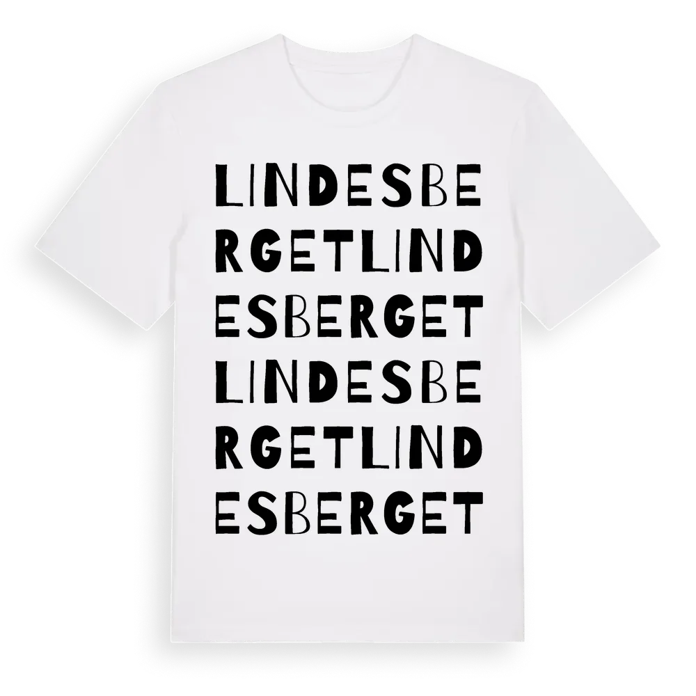 Lindesberget ordlek t-shirt är inspirerad av Lindesberget i Östergötlands län, Sverige. Tröjan är designad för dig som har en speciell koppling till platsen – oavsett om du bor här, har rötterna här eller bara älskar Lindesberget.