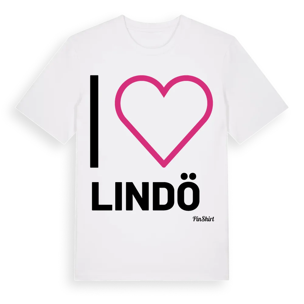 Det klassiska "I ❤ Lindö"-motivet i stort format som täcker hela bröstet. För dig som vill visa kärleken till Lindö på riktigt. Premium bomull, unisex – från byn Lindö i Östergötlands län.
