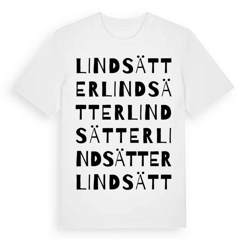 Lindsätter ordlek t-shirt är inspirerad av Lindsätter i Östergötlands län, Sverige. Tröjan är designad för dig som har en speciell koppling till platsen – oavsett om du bor här, har rötterna här eller bara älskar Lindsätter.
