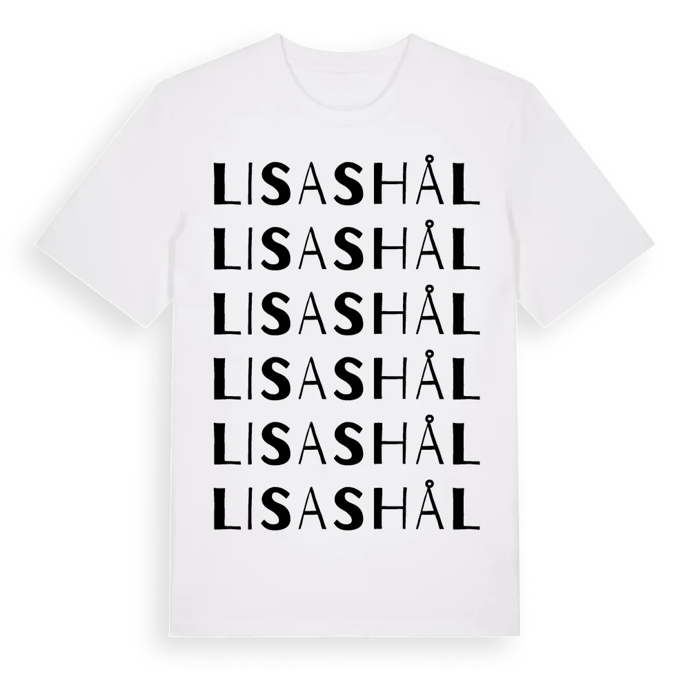 Lisas Hål ordlek t-shirt är inspirerad av Lisas Hål i Östergötlands län, Sverige. Tröjan är designad för dig som har en speciell koppling till platsen – oavsett om du bor här, har rötterna här eller bara älskar Lisas Hål.