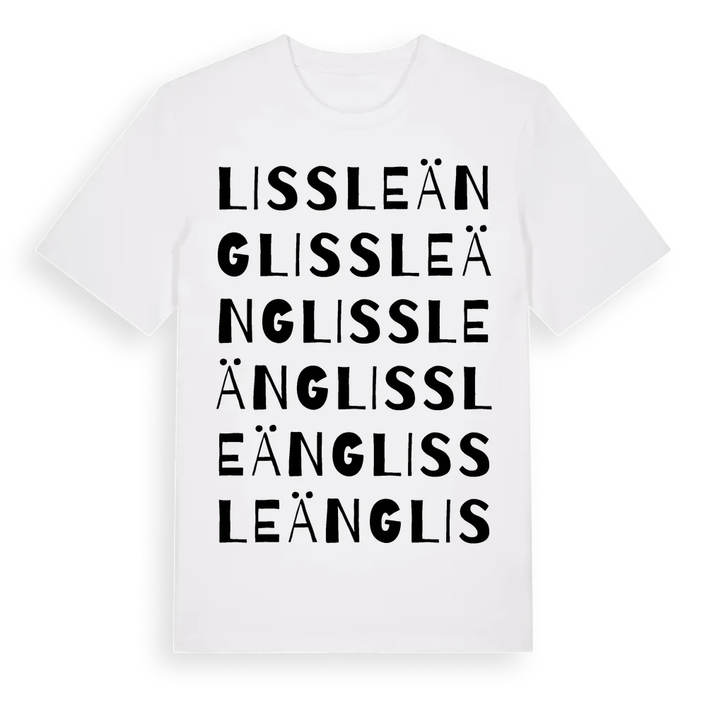 Lissleäng ordlek t-shirt är inspirerad av byn Lissleäng i Östergötlands län, Sverige. Tröjan är designad för dig som har en speciell koppling till platsen – oavsett om du bor här, har rötterna här eller bara älskar Lissleäng.
