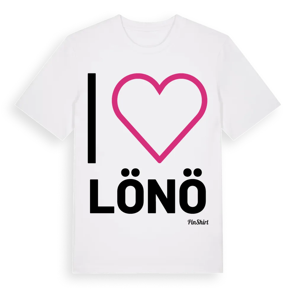 Det klassiska "I ❤ Lönö"-motivet i stort format som täcker hela bröstet. För dig som vill visa kärleken till Lönö på riktigt. Premium bomull, unisex – från Lönö i Östergötlands län.