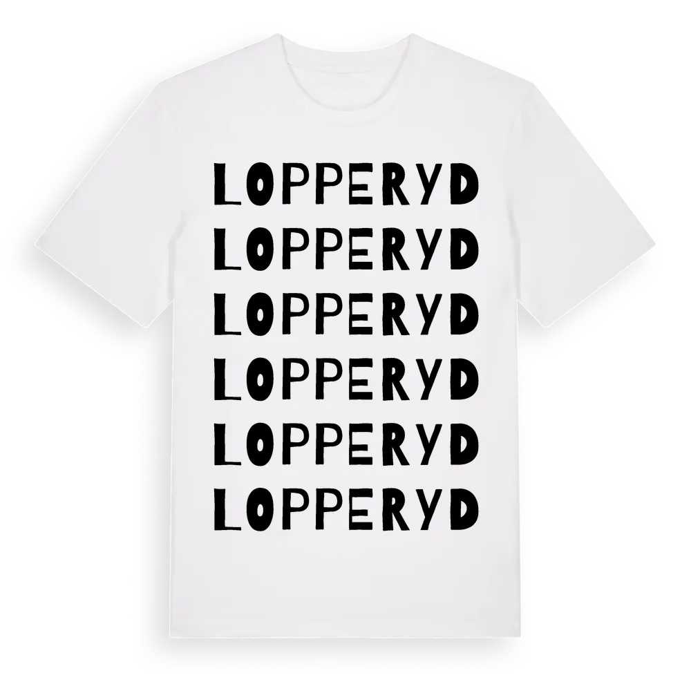Lopperyd ordlek t-shirt är inspirerad av Lopperyd i Östergötlands län, Sverige. Tröjan är designad för dig som har en speciell koppling till platsen – oavsett om du bor här, har rötterna här eller bara älskar Lopperyd.
