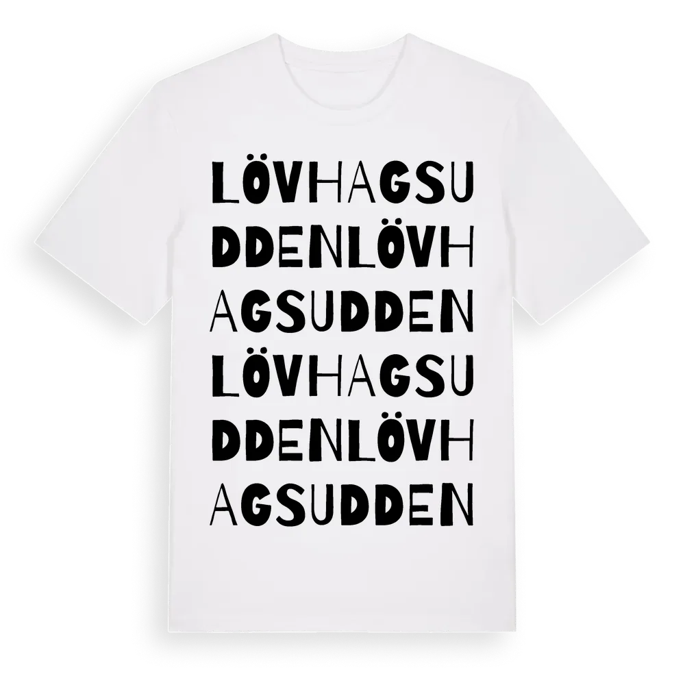 Lövhagsudden ordlek t-shirt är inspirerad av Lövhagsudden i Östergötlands län, Sverige. Tröjan är designad för dig som har en speciell koppling till platsen – oavsett om du bor här, har rötterna här eller bara älskar Lövhagsudden.