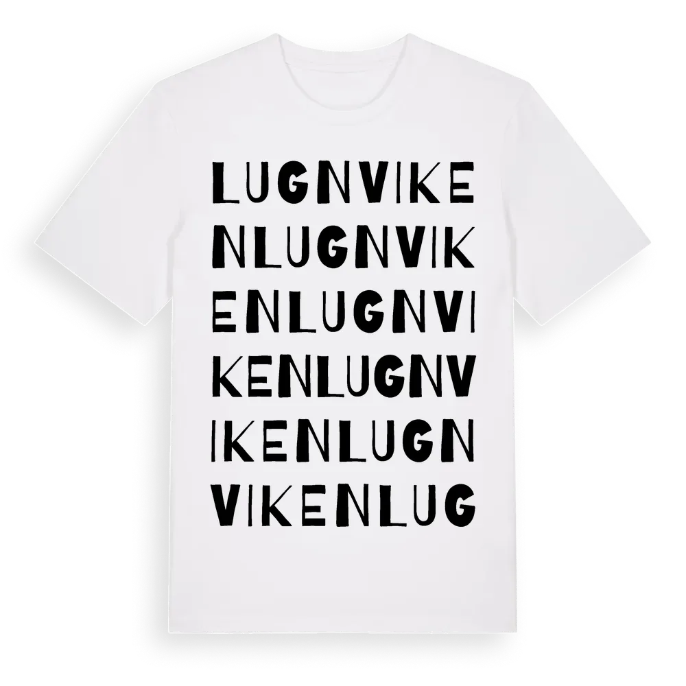 Lugnviken ordlek t-shirt är inspirerad av Lugnviken i Östergötlands län, Sverige. Tröjan är designad för dig som har en speciell koppling till platsen – oavsett om du bor här, har rötterna här eller bara älskar Lugnviken.