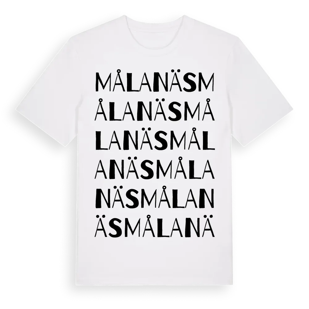 Målanäs ordlek t-shirt är inspirerad av Målanäs i Östergötlands län, Sverige. Tröjan är designad för dig som har en speciell koppling till platsen – oavsett om du bor här, har rötterna här eller bara älskar Målanäs.