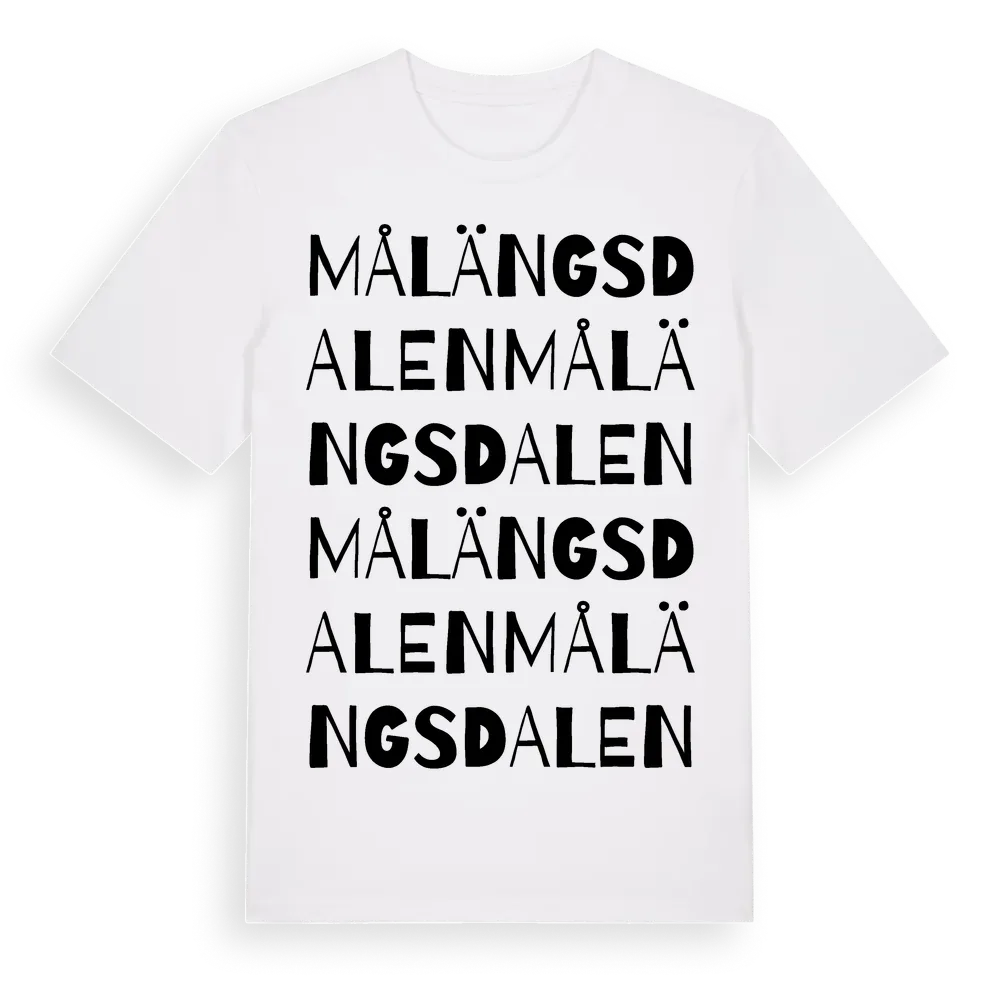 Målängsdalen ordlek t-shirt är inspirerad av Målängsdalen i Östergötlands län, Sverige. Tröjan är designad för dig som har en speciell koppling till platsen – oavsett om du bor här, har rötterna här eller bara älskar Målängsdalen.