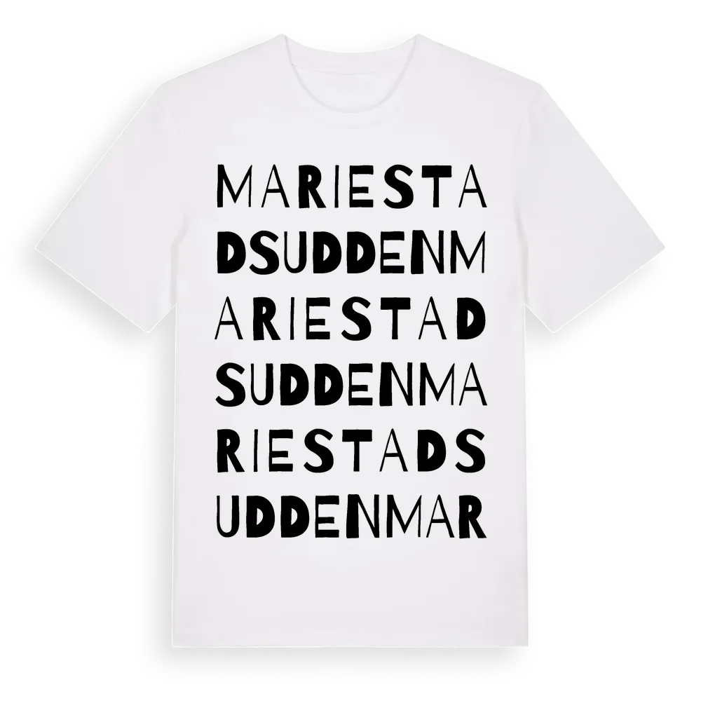 Mariestadsudden ordlek t-shirt är inspirerad av Mariestadsudden i Östergötlands län, Sverige. Tröjan är designad för dig som har en speciell koppling till platsen – oavsett om du bor här, har rötterna här eller bara älskar Mariestadsudden.