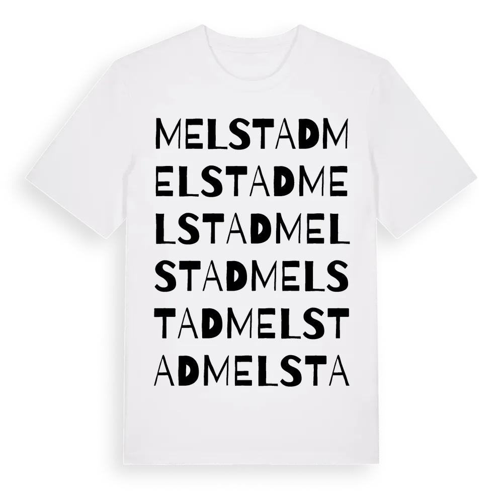 Melstad ordlek t-shirt är inspirerad av byn Melstad i Östergötlands län, Sverige. Tröjan är designad för dig som har en speciell koppling till platsen – oavsett om du bor här, har rötterna här eller bara älskar Melstad.