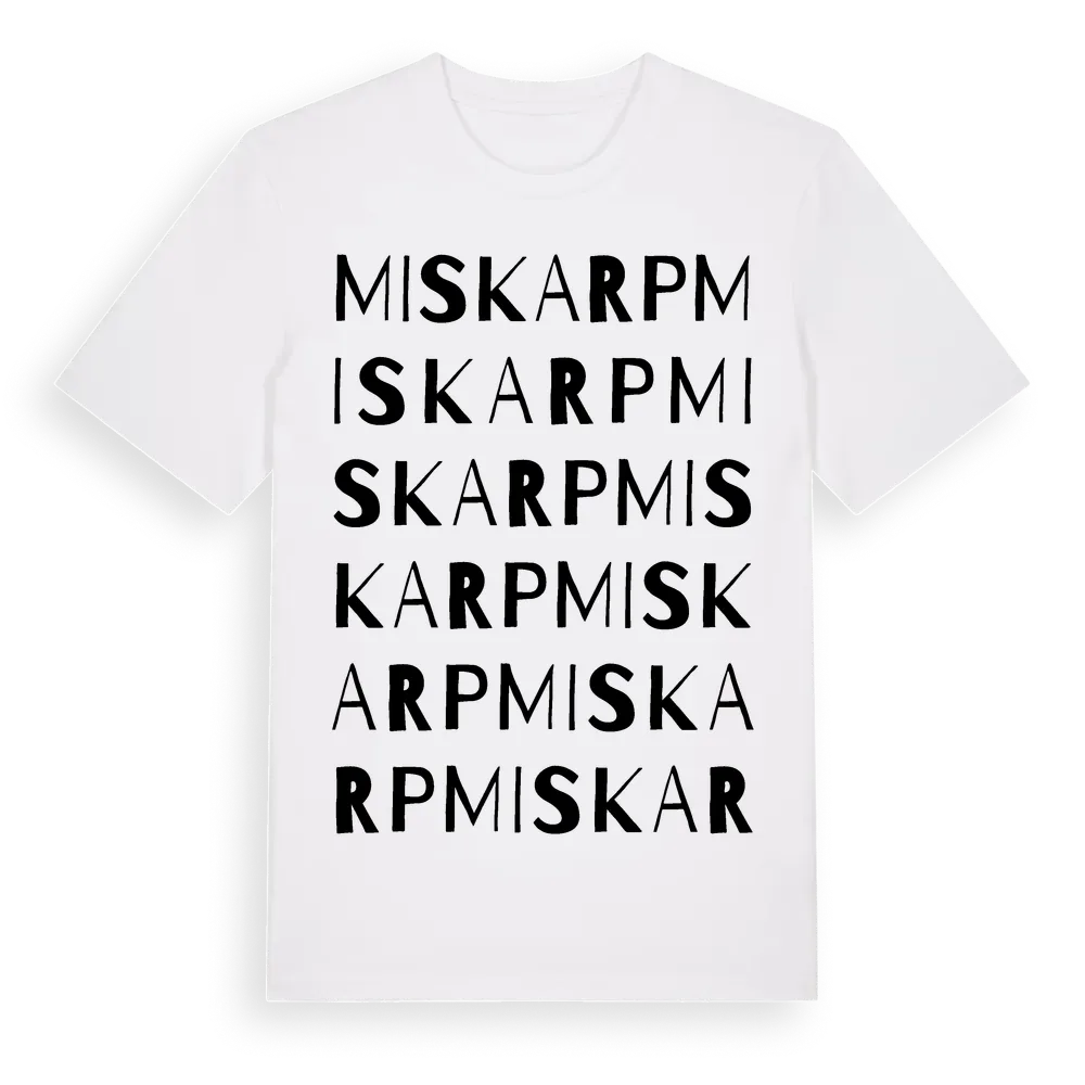 Miskarp ordlek t-shirt är inspirerad av Miskarp i Östergötlands län, Sverige. Tröjan är designad för dig som har en speciell koppling till platsen – oavsett om du bor här, har rötterna här eller bara älskar Miskarp.