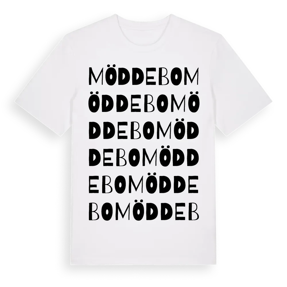 Möddebo ordlek t-shirt är inspirerad av byn Möddebo i Östergötlands län, Sverige. Tröjan är designad för dig som har en speciell koppling till platsen – oavsett om du bor här, har rötterna här eller bara älskar Möddebo.