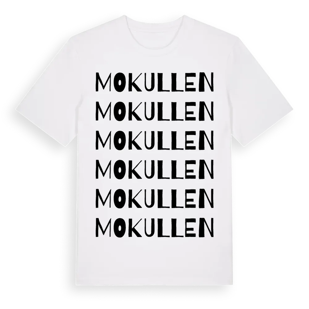 Mokullen ordlek t-shirt är inspirerad av Mokullen i Östergötlands län, Sverige. Tröjan är designad för dig som har en speciell koppling till platsen – oavsett om du bor här, har rötterna här eller bara älskar Mokullen.