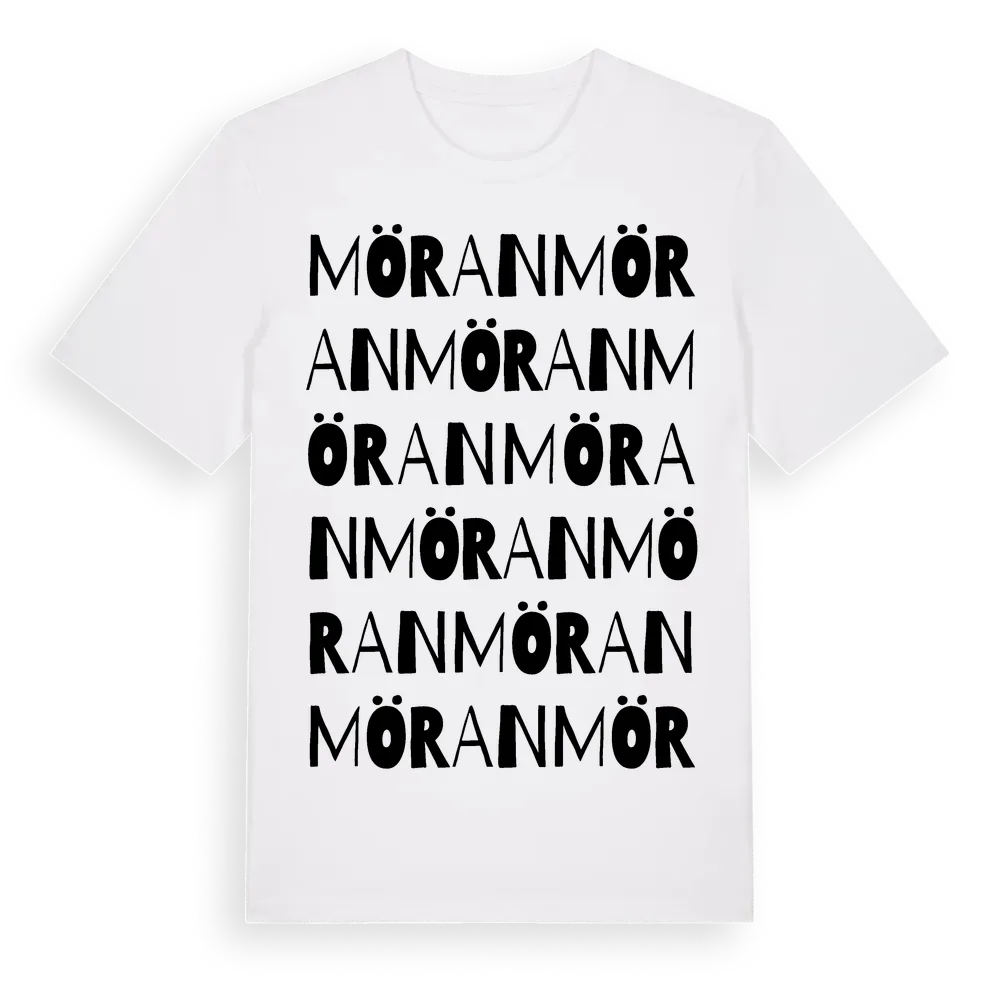 Möran ordlek t-shirt är inspirerad av Möran i Östergötlands län, Sverige. Tröjan är designad för dig som har en speciell koppling till platsen – oavsett om du bor här, har rötterna här eller bara älskar Möran.