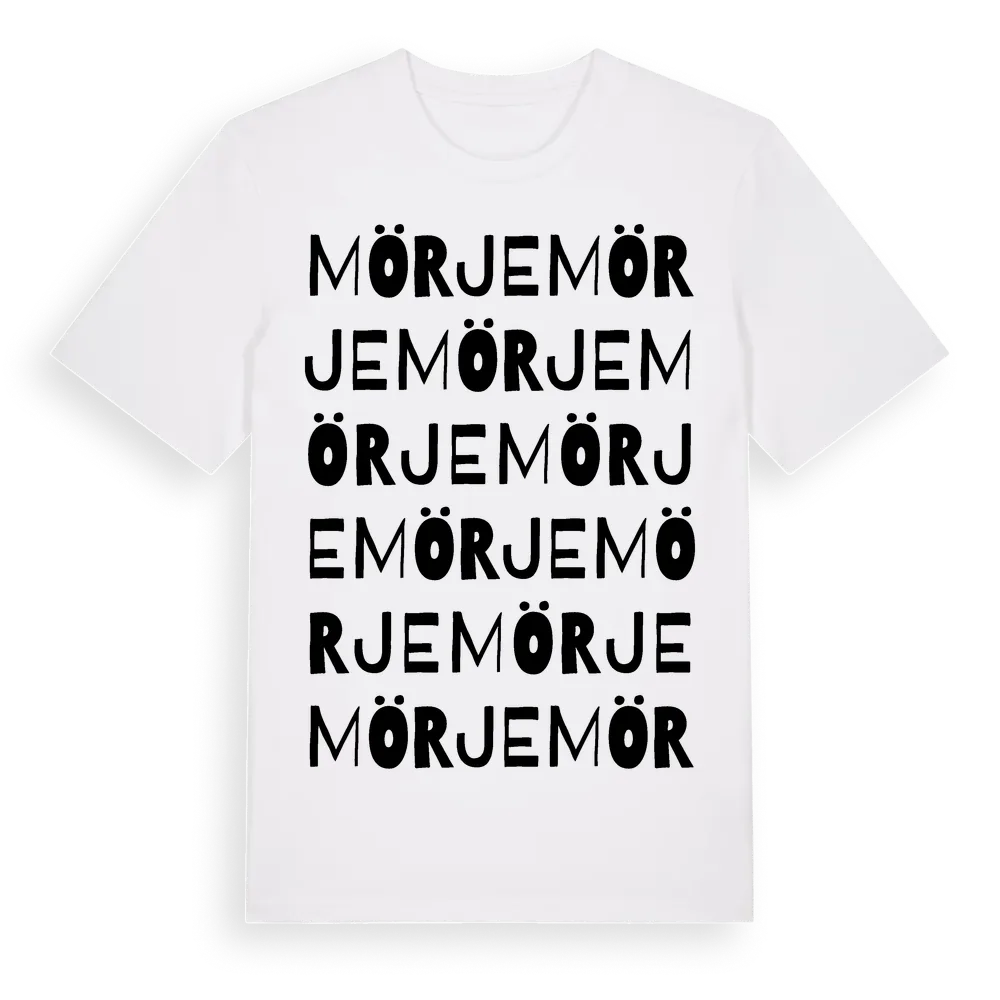 Mörje ordlek t-shirt är inspirerad av Mörje i Östergötlands län, Sverige. Tröjan är designad för dig som har en speciell koppling till platsen – oavsett om du bor här, har rötterna här eller bara älskar Mörje.